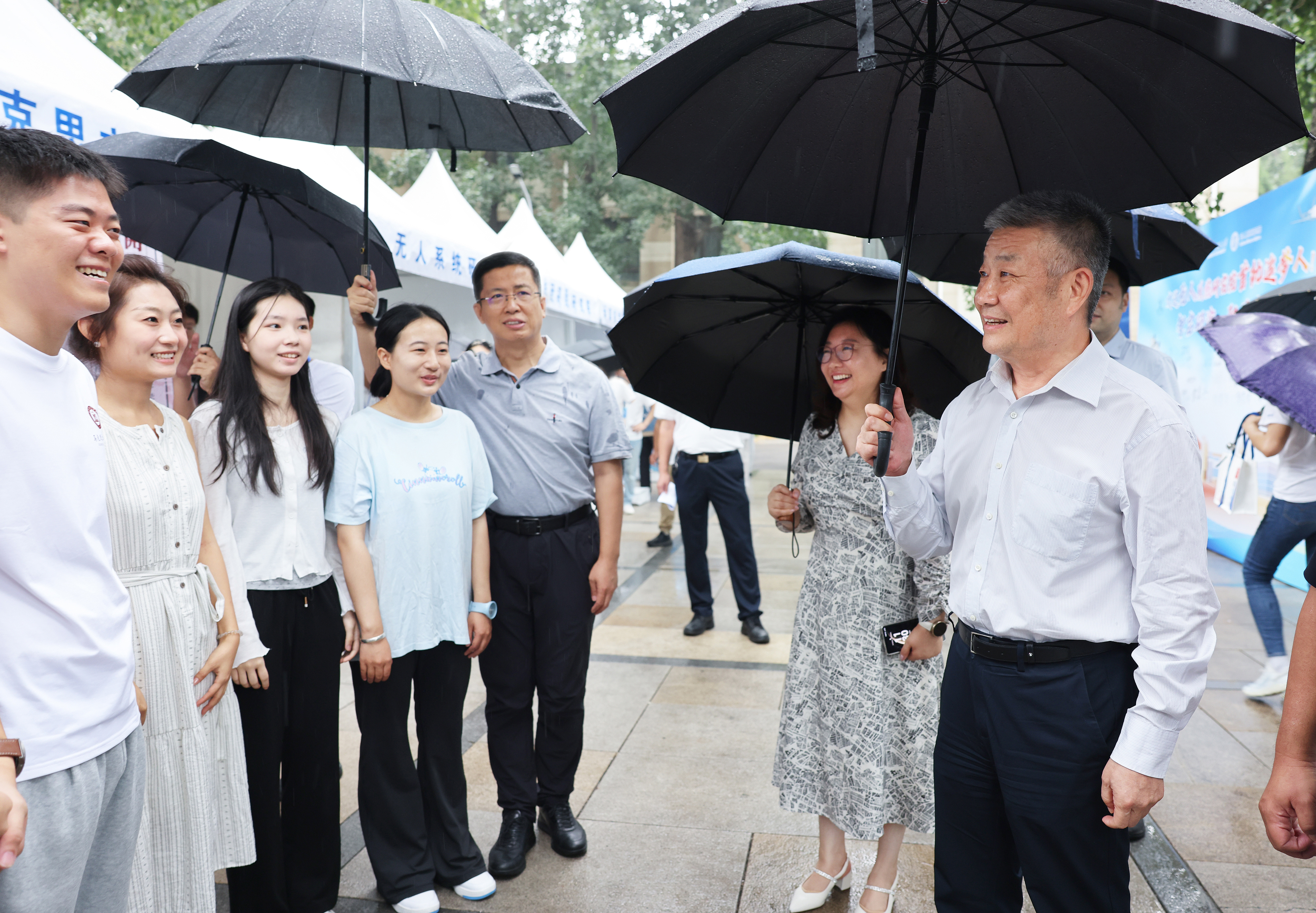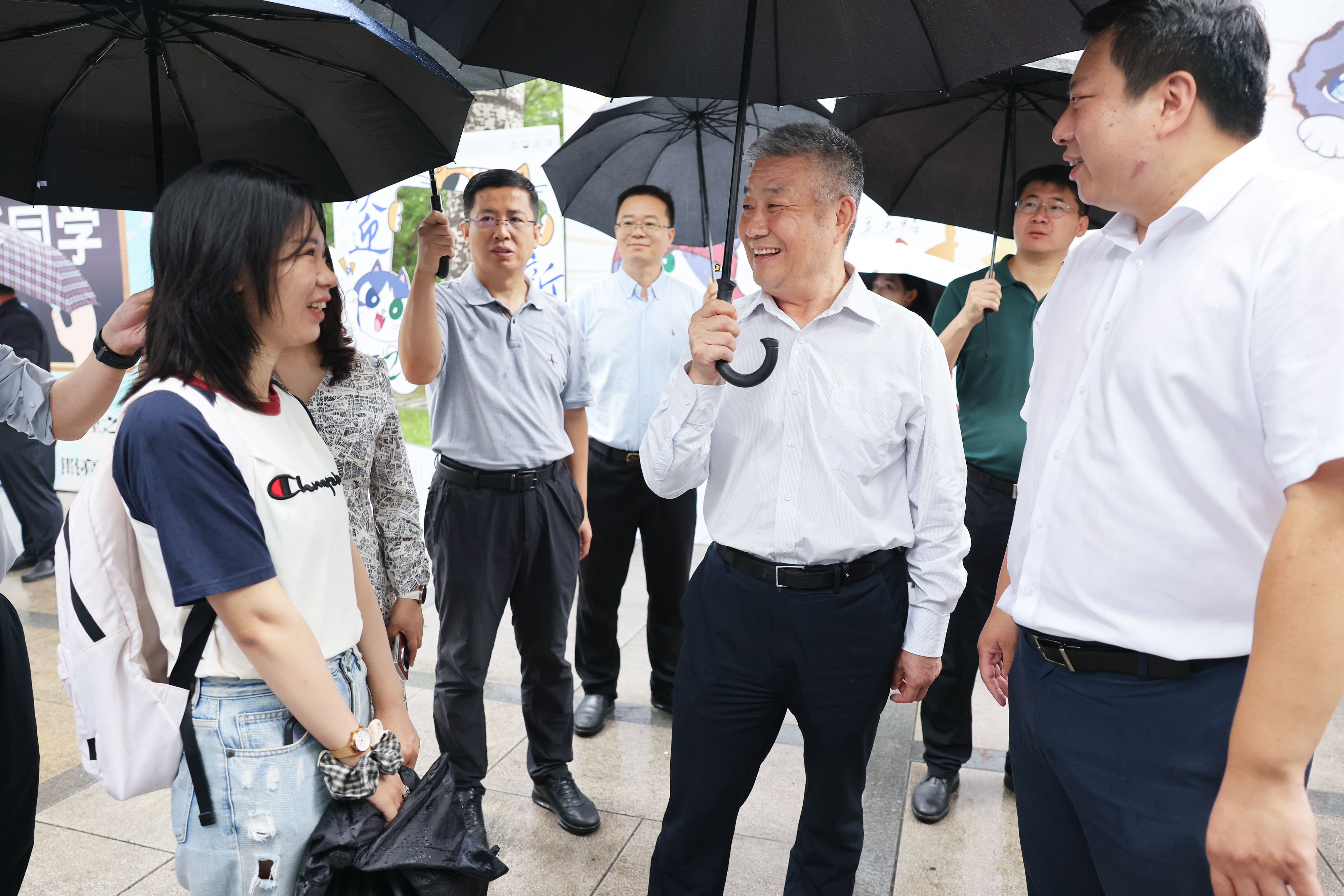 9月5日,校党委书记赵长禄、副校长邓怡来到迎新现场,了解迎新进展,慰问参与迎新工作的师生,并与前来报到的2025级研究生新生亲切交流,向他们表示热烈欢迎,细致询问了他们的专业研究方向,鼓励同学们在自己的专业领域深耕不辍,在北航的一流平台上成长成才,做空天报国、追求卓越的时代新人。
