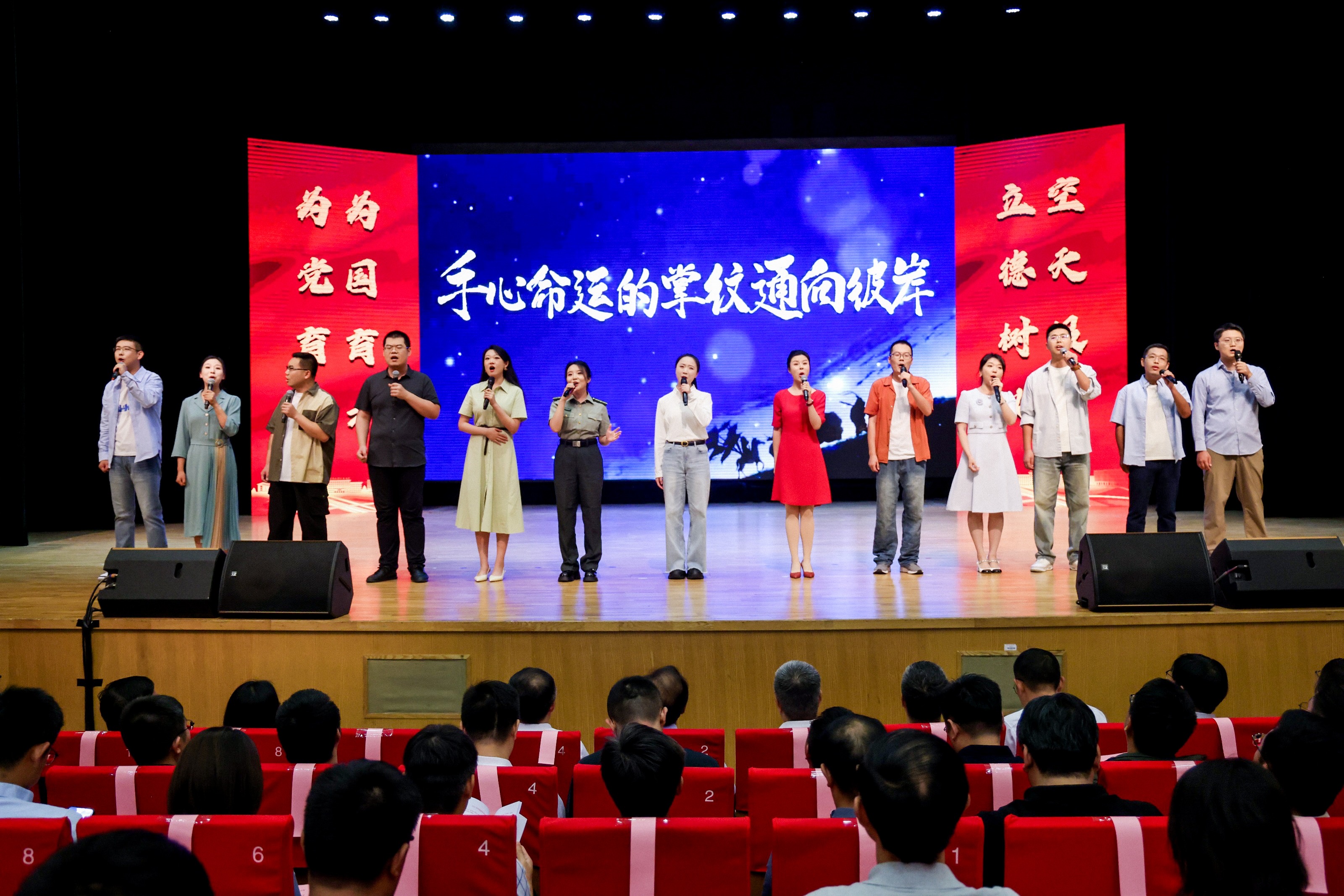 荣休教师代表、从教三十年教师代表与广场合唱学生代表共同带来情景表演《山河回响》