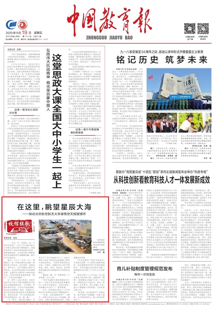 《中国教育报》头版2025年9月19日(记者 张欣)报道: