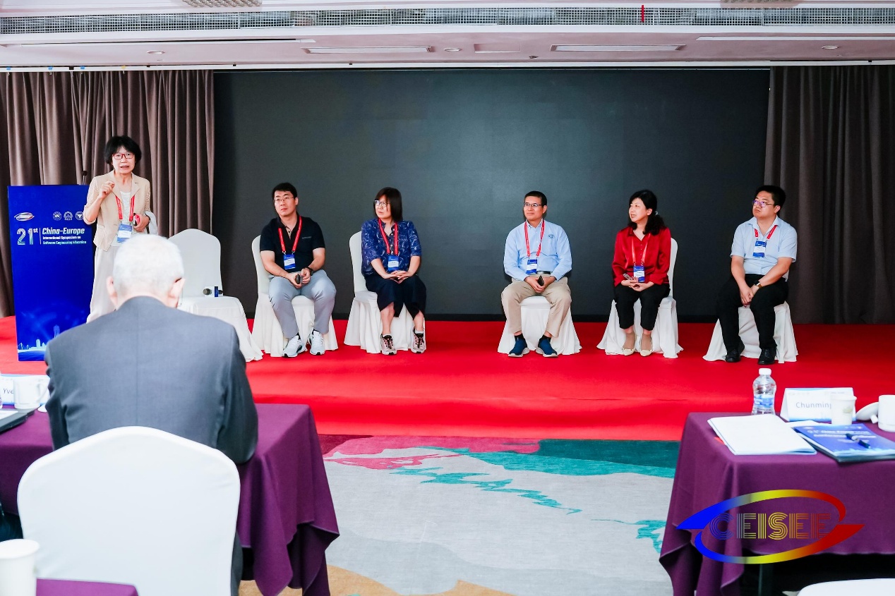 20日上午分别邀请了伊夫·杜克和北航教授岳涛做特邀报告。伊夫·杜克分享了法国以及其他欧洲国家在教育全周期中使用人工智能开展教学与学习的框架;岳涛分享了其对AI和量子计算等新兴技术引发的软件工程教学重构的思考。上午还设置了以“人工智能驱动的软件工程教育”(“AI-empowered Software Engineering Education”)为主题的高峰论坛,张莉担任主持人,岳涛、南洋理工大学教授刘杨、中国科学技术大学教授张昱、武汉大学教授玄跻峰以及国防科技大学教授毛新军参与研讨,讨论了人工智能对软件工程教育范式、课程设计、教师角色以及学生评估方式的深远影响。