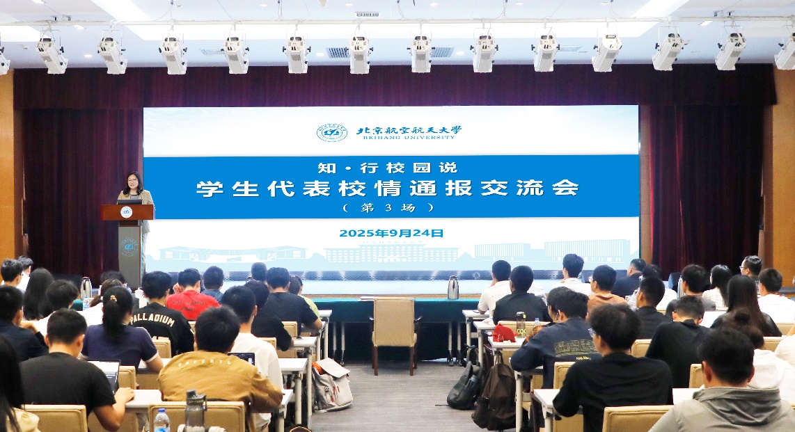 北航新闻网9月26日电(通讯员 郭晶晶/文 查路遥/摄影) 9月24日,“知·行校园说”学生代表校情通报交流会(第3?。┰谘г郝沸G缧幕嵋橹行拇蟊ǜ嫣倏?。副校长邓怡及相关部门负责人,校学生会代表、校研究生会代表及各学院新生代表、新生辅导员代表共80余人参会。