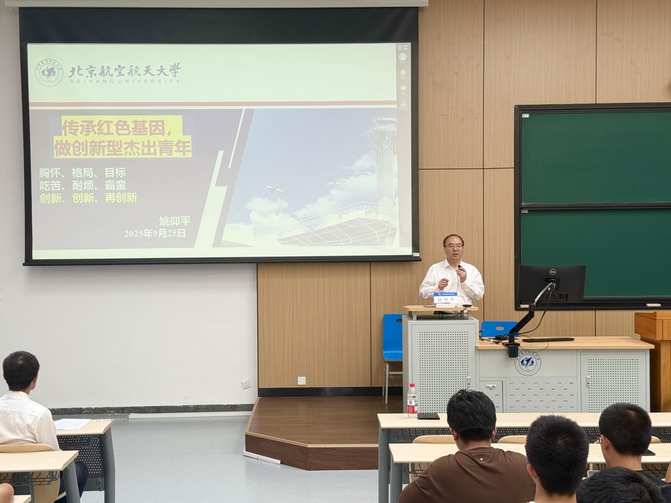 北航新闻网10月4日电(通讯员 谢贝贝)金秋时节,丹桂飘香,沙河校区J0-002教室里,士嘉书院2025级300余名新生全神贯注地聆听着一堂生动的思政课,士嘉书院院长姚仰平教授作新学年“士嘉大讲堂”首场报告《传承红色基因 做创新型杰出青年》。