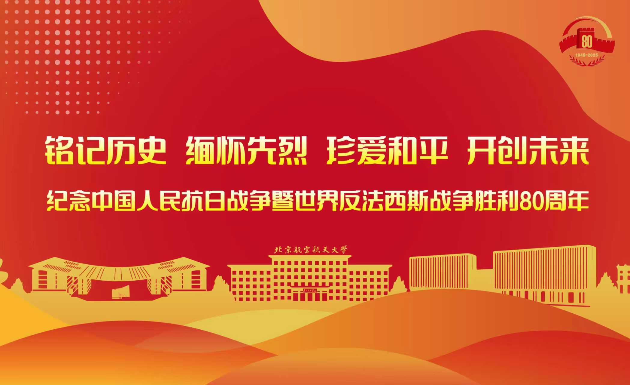 编者按:2025年是中国人民抗日战争暨世界反法西斯战争胜利80周年。80年前,全体中华儿女以顽强的意志和英勇的斗争,付出超过3500万人伤亡的巨大代价,取得了正义战胜邪恶、光明战胜黑暗、进步战胜反动的伟大胜利。80年来,从伟大胜利走向伟大复兴,我们党团结带领全国各族人民赓续英雄血脉、弘扬家国情怀,亿万人民共赴爱国主义的伟大实践,写下了中华民族爱国主义精神的辉煌篇章。为铭记历史、缅怀先烈,弘扬伟大爱国主义精神、伟大抗战精神,激发全校师生爱国热情,增强历史责任感和时代使命感,北航新闻网即日起开设《纪念抗战胜利80周年》专题,让爱国主义精神构筑起民族的脊梁,召唤着一代代中华儿女为国家和民族发展奋斗不息。