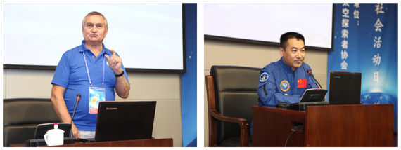 俄罗斯航天员艾特库安娜托力和中国航天员张晓光分别作报告