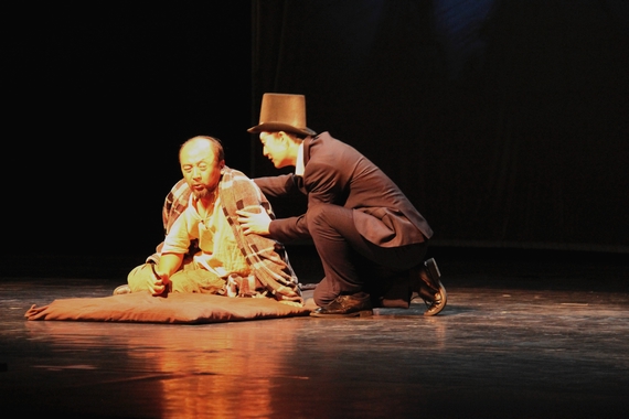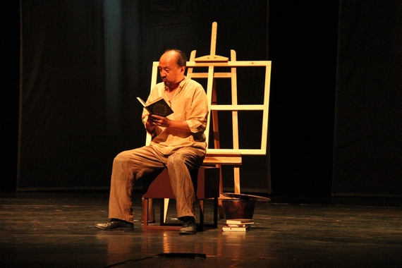 北航新闻网9月22日电(通讯员 王晴) 9月19日晚7:00,由北京人民艺术剧院带来的话剧《燃烧的梵高》在北航晨兴音乐厅上演。该剧由人艺导演任鸣执导,王劲松、白荟等主演,展现了梵高短暂生命中一次又一次的惨败经历,和他追求艺术梦想的执拗与狂热。