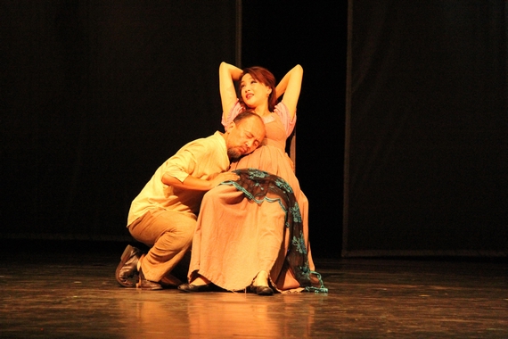 当晚的演出中,投影在舞台后方白布上的画面以充满质感的手绘形式出现,配合剧情展现梵高的家、法国南部的麦田、热烈的向日葵等景象,而在最后梵高自杀的时刻来临时,伴随一生枪响,演员身后的多媒体迸发出刺眼的光芒,就仿佛是梵高在鲜血中怒放出艺术之花,极大的渲染了悲剧氛围。