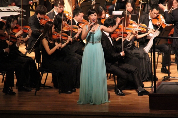 在当晚的演出中,艺术家们以独唱、重唱、合唱等多种形式表演了《爱我中华》、《听妈妈讲过去的事情》、《玛依拉变奏曲》、《半个月亮爬上来》、《青春舞曲》、《打靶归来》、《马车夫之歌》等共二十余首乐曲?!吨泄巍犯前蜒莩龃胍桓龈叱?,大家用歌声共同祝福我们伟大的祖国。