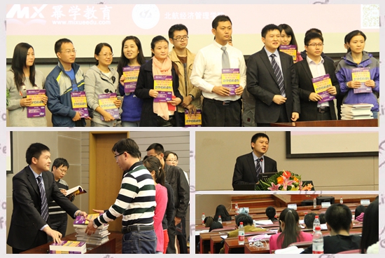 北航新闻网10月14日电(通讯员 张丽媛) 距离联考还有80天的冲刺阶段,在网上报名的关键时间节点,为了能够帮助大家正确选择院校、科学备考,在联考中考出好成绩,10月12日14时,北航MBA与北航出版社、北京幂学教育集团联手举办北航MBA招生交流会暨《数学考前冲刺》新书发布及签赠会。