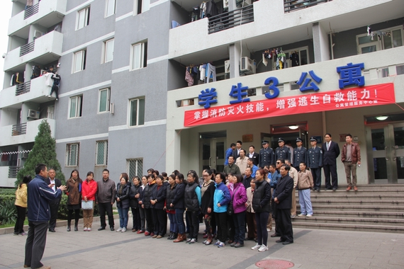 整个演练过程中,同学们参与体验非常踊跃,现场有很多学生观摩学习。同学们纷纷表示通过此次演练使他们掌握了灭火器的使用方法,提高了高层逃生自救能力。经过粗略统计,有学生、员工、部分教职工,以及大运村警务站和物业安保人员等近500人参加了演练体验。