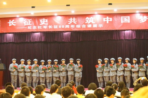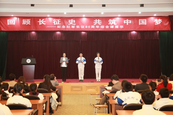 北航新闻网10月31日电(通讯员 冮英 凌薇薇 许杰) 10月24日下午3点30分,北航附中初二年级语文组承办的“回顾长征史,共筑中国梦”综合展示课活动在如心会议中心大报告厅举行。海淀区教科所闫顺林主任,兄弟学校老师以及附中200多名师生观摩了此次活动。