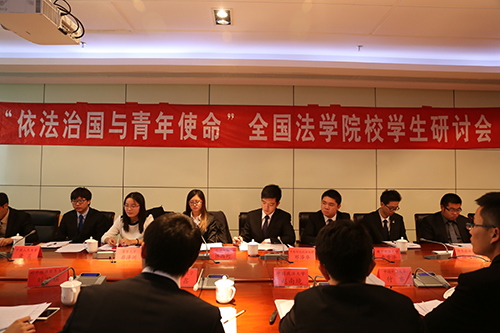 会议以“依法治国与青年使命”为主题,深入学习研究党的十八届四中全会精神,与会学生代表结合自身学习、实践经历,从贯彻社会主义核心价值观、校园法治文化建设、社会法律援助活动、司法实务实习等多个角度讨论了依法治国的理念与青年的时代任务。