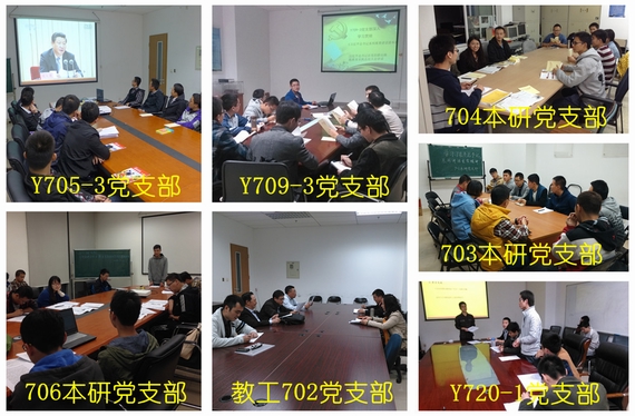 10月18日至31日期间,各党支部分别在新主楼B506、A213、A402、A306、A312、A517、A412等会议室召开支部全体党员大会,以各种形式组织学习习近平总书记讲话活动。Y705-3党支部组织支部党员集体观看习近平总书记重要讲话视频;708本研党支部采取任务到人的方式,每名党员负责重点学习一篇总书记讲话,并在支部会议上由党员轮流做主讲人报告的形式组织学习; Y709-2党支部采用老党员主讲,新党员主记的形式组织学习;705本研党支部结合党支部实际情况,重点讨论了如何贯彻执行习近平总书记重要讲话精神于党支部活动中;教工702、Y703-3等大部分党支部采取头脑风暴的形式组织集体讨论。