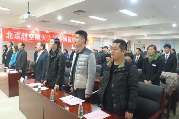 最后,在雄壮嘹亮的国际歌歌声中,北航沙河夜校(第七期)开学典礼落下帷幕。