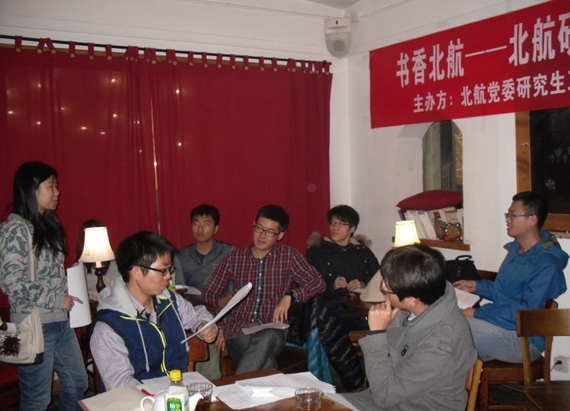北航新闻网11月26日电(通讯员 孙计先) 11月23日晚,由党委研究生工作部主办,北航《交流》报社承办的书香北航读书会在雕刻时光咖啡厅(北航店)举办?;?、宇航、材料、人文学院及北师的同学共同参加了本次读书会?;疃山涣鞅ㄉ绶荷褐鞒?。