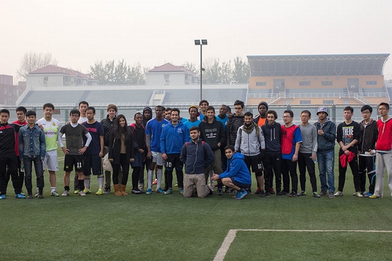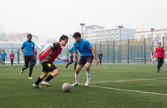 北航新闻网11月27日电(通讯员 白晋宇/文 王冰冰/摄影) 绿茵点亮梦想,激情舞动青春。11月26日中午12点30分,由电子信息工程学院主办的中外学生足球友谊赛在北航小足球场如期举行。本次足球赛秉承“E路青春,感恩同行”的主题,展现出了足球场上挥洒青春、朝气蓬勃的豪情,向北航全体留学生献上感恩节的祝福。