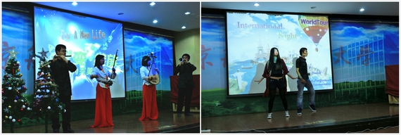 此次交流之夜在中国学生和外国学生的动感舞蹈中闪亮开场,来自北航民乐团的同学们紧接着为大家演奏了两首中国特色民族乐曲。在收到来自各国国际学生的温馨祝福视频后,三位旅行者带领大家一同踏上了环球之旅。