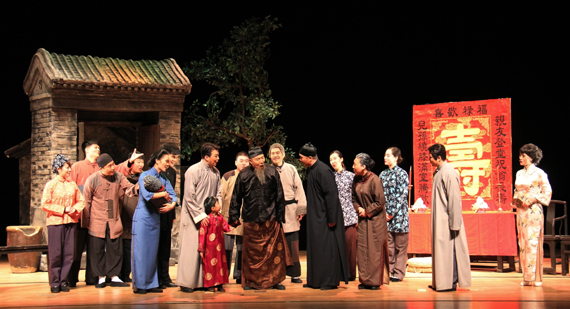 北航新闻网12月5日电(通讯员 王晴) 12月4日晚7时,由北京市曲剧团出品的北京曲剧《四世同堂》在晨兴音乐厅开演?!端氖劳谩肥抢仙嵯壬醋鞯囊徊肯质抵饕褰茏?,故事讲述了在卢沟桥事变爆发、北平沦陷的时代背景下,以祁家四世同堂的生活为主线,形象、真切地描绘了以小羊圈胡同住户为代表的各个阶层、各色人等的荣辱浮沉。老舍先生以深厚精湛的艺术功力和炉火纯青的小说技艺刻画了一系列栩栩如生的艺术形象,展现了风味浓郁的老北京生活画卷。