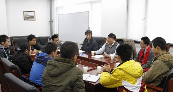 本次交流活动前,沙河校区管委会主任姚仰平教授与丁水汀教授会面,并就一二年级学生的学习与生活与进行了交流。