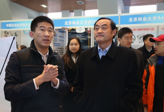 答辩现场,团中央书记处第一书记秦宜智驻足聆听了我校实践队员关于实践项目的汇报。