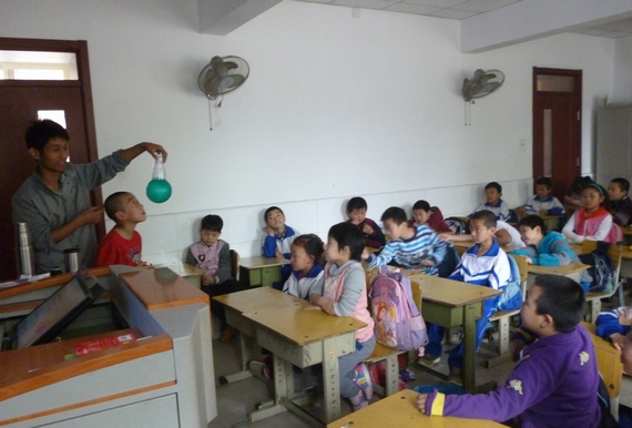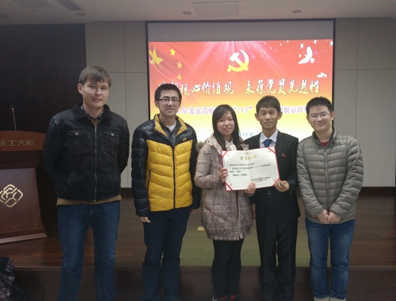 在今年的红色“1+1” 共建活动中,1201党支部为解决城市周边郊区小学素质教育匮乏的问题,自主进行了第二课堂的课程体系设计和教材编写。自2014年3月起,坚持两周一次的频率前往沙河中心西沙屯小学开展以素质教育为目的的第二课堂共建活动。22名学生党员,124个可爱的孩子,因为第二课堂的40余节课程产生联系、建立感情??蒲裘商剿?、心理素质拓展、世界观的培养、自主能力锻炼,1201党支部的成员们真正将素质教育带到课堂中,学生教师们用自己的智慧与能力为西沙屯小学的孩子们带去了知识、带去了欢乐、更带去了书本上学不到的品质与精神。在评审现场,1201党支部用充实而富有感染力的视频,将自己的支教理念、支教内容、学生党员的社会担当以及践行社会主义核心价值观的实际行动很好地展现了出来,在场评委和观众对此报以热烈掌声。最终,1201党支部以92.00分获得一等奖。