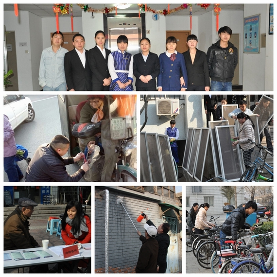 培训中心青年团支部成员也来到教师公寓,兵分几路投入到美化环境的劳动中。大家齐动手,共努力,负责清洗纱窗的人员带起手套,清洗纱窗;负责摆放自行车的人员紧随其后,对周边自行车进行摆放。尽管天气寒冷给清洁工作带来了一定困难,但挽起袖子全神贯注工作的青年们依然冲在第一线。