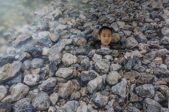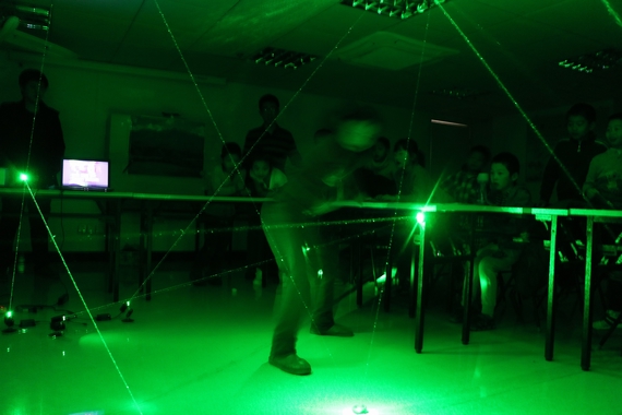 “消失的手臂”课堂中,孩子们自行绘制迷彩布、制作迷彩衣,并在迷彩背景布下检验其隐身效果