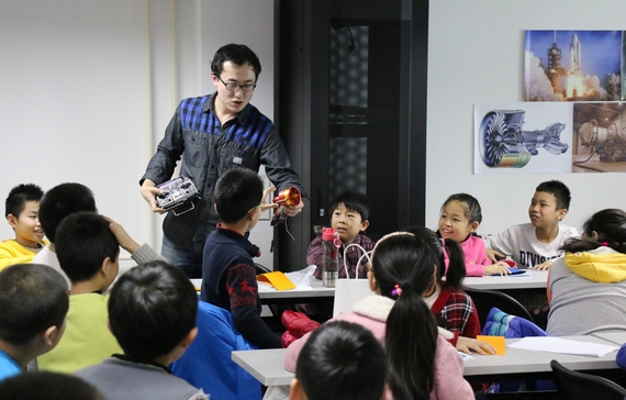 准点起航、趣味飞行、空气变奏曲、飞翔的钢铁、金属的记忆、飞得越来越高、飞机上的不倒翁、消失的手臂、一飞冲天……有趣的课程名字在第一时间就激发了同学对课程的兴趣。随着课程推进,越来越多的家长带着孩子慕名而来,原计划容纳35名学生的课堂立刻膨胀到60多名学生,虽然座位略显拥挤,原本每人一份的活动套材也变为每两人共用一份,但这些都挡不住同学们的求知欲,讲师团成员的热情也由此彻底点燃。