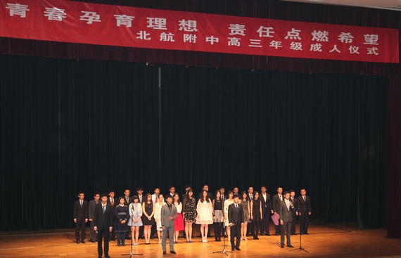 北航附中党总支书记、德育校长吴鹏程发表了热情洋溢的致辞,他希望同学们要放眼未来,与时俱进,用青春、智慧、激情和热血谱写出属于自己的青春画卷。各班同学都表演了精彩的节目,用动人的旋律和律动的舞蹈纪念自己的18岁;家长们送给孩子的礼物和信带给孩子无尽感动;高三年级的全体老师也为孩子们带来各具学科特色的祝福;在教学校长许杰的带领下,全体高三学生庄严宣誓,铮铮誓言标志着他们正式步入了成年人的行列。