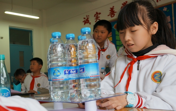 学生操控四旋翼通过体验区内设置的飞行障碍
