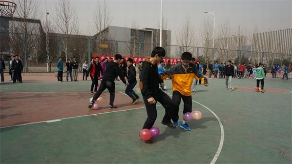 作为春季文化节的第一弹,由学院体育部主办的趣味运动会以户外趣味运动为主,采取积分制,共有四项户外活动依次展开,分别为“技巧投篮大赛”、“踩气球”、“龙卷风”以及“撕名牌大战”。其中,“技巧投篮”颠覆传统,眩晕的运动员个个形似醉翁,惹得全场爆笑连连。“踩气球”活动要求同学们脚绑气球,以矫健的身手于混战中?;ぷ约旱钠?,干掉他人的气球,场上气球爆炸,声声入耳,气氛活跃,高潮迭起。“龙卷风”则是要求每班的参赛队员手抬木杆,共同进退,一起旋转绕过障碍,团结才是取胜的关键。本次活动的重头大戏必数“撕名牌大战”无疑,同学们奔走于足球场上,寻找藏匿的上百把或真或假的水枪参与水枪混战,同时,辅导员们也都各显神通,与同学们打成一片,不亦乐乎。