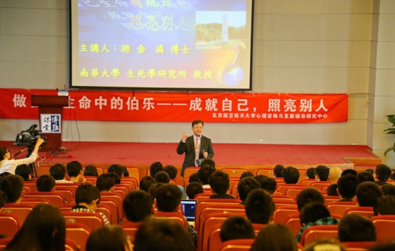 北航新闻网4月20日电(通讯员 于洁) 4月15日下午14:30,博雅课堂之“做自己生命中的伯乐——成就自己,照亮他人”在沙河校区实4-205举行。本次讲座由我校心理咨询与发展辅导研究中心承办,特别邀请到了心理剧治疗专家、台湾南华大学游金潾教授主讲,为我校学生带来了一场震撼心灵的生命教育演讲。