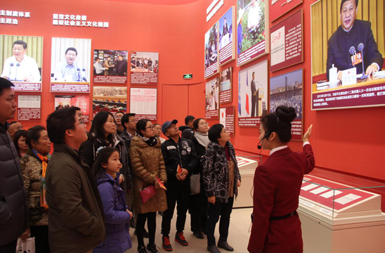 最后,辅导员们重点参观了教育展厅。改革开放40年来,在发展程度上,我国已建成了世界上最大规模的教育体系:从教育体系来看,大中小幼纵向贯通,公办教育与民办教育共同发展,学历教育与非学历教育立体交叉,出国留学与来华留学同步扩大;从规??矗?1万多所学校遍布城乡,2.7亿名学生在校学习,1600万名专任教师,教育体量世界最大;从教育普及程度来看,2017年,我国学前教育三年毛入园率达到79.6%,超过中高收入国家平均水平;小学学龄儿童净入学率达到99.9%、初中阶段毛入学率达103.5%,义务教育普及程度达到高收入国家平均水平;高中阶段毛入学率达到88.3%,高等教育毛入学率达到45.7%,均超过中上收入国家平均水平。经过改革开放40年的发展,今天,中国教育对外开放正在全方位推进,教育正在成为中国走近世界舞台中央的一张亮丽名片。
