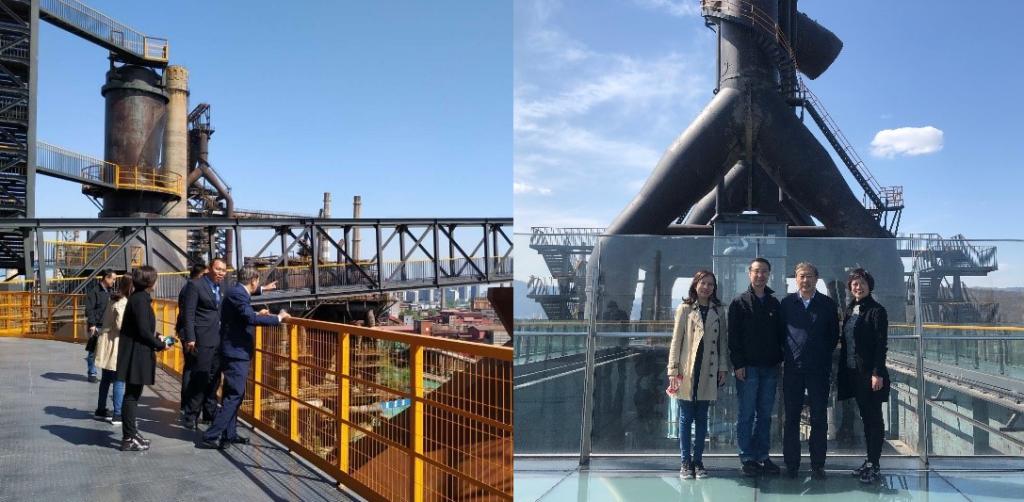 最后,一行人登上首钢园区的三号高炉。历经数年改造,这座首钢功勋高炉已经实现从废旧建筑到工业博物馆的华丽变身,充满工业文明的张力和现代科技的酷炫魅力。大家居高临下总揽首钢园区全貌,回顾其过去辉煌灿烂的工业历史,再看如今惊艳世人的崭新面貌,心中充满对首钢智慧创新的钦佩之情,赞叹新中国成立70年来北京的巨大变化和祖国的辉煌成就。