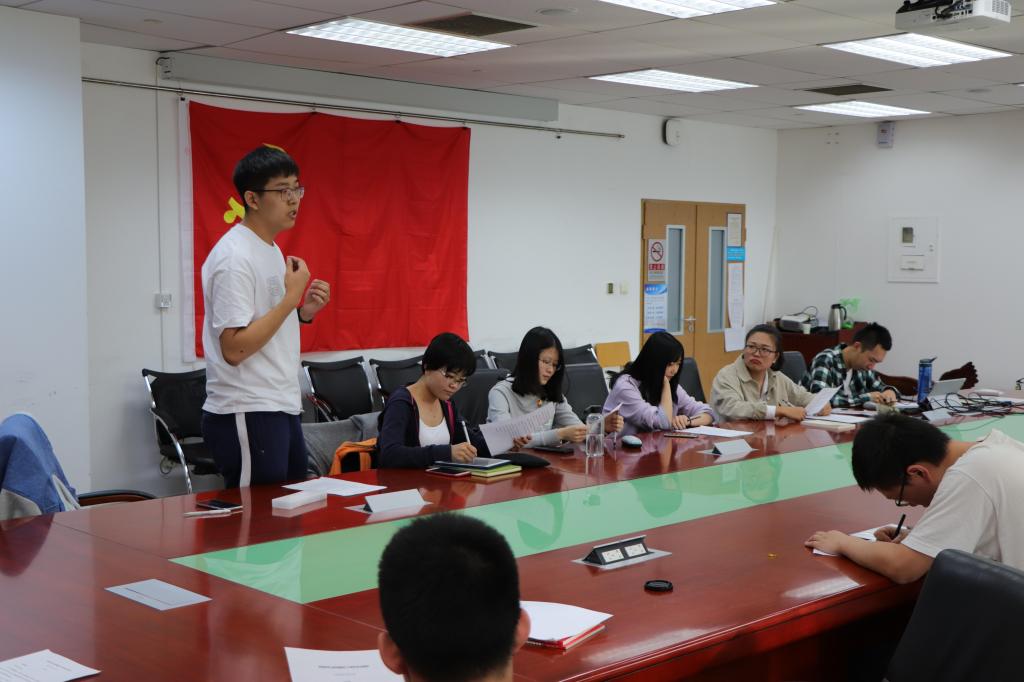 学生第一党支部会议由党支部书记孙爱芃同志主持,主题为“学习习近平总书记在庆祝中华人民共和国成立70周年大会上的重要讲话精神”。在学习完习近平总书记在庆祝新中国成立70周年大会上的讲话之后,支部分为三个小组,分别讨论和讲述了对重要讲话精神的理解、感悟与收获。