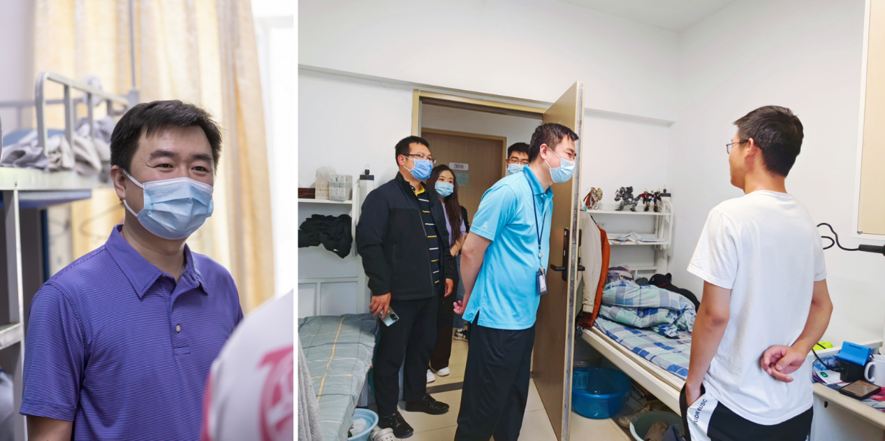 化学学院院长刘明杰一行到实验7号楼研究生工位、沙河东区和西区宿舍看望本研学生,与同学们详细沟通了学习和科研进展,了解学生需求,鼓励同学们合理安排好科研、上课、学习及生活,积极锻炼身体,以实际行动守护美丽校园。