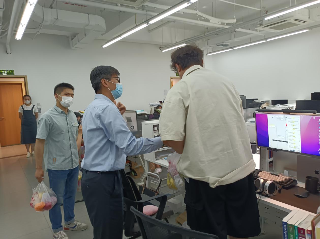 5月17日,为更好的了解同学们的学习和思想状态,集成电路学院负责人和辅导员们全覆盖走访了学生宿舍、学生工位区,慰问在校的同学们。学院组织将慰问的水果送到每一位同学的宿舍中和工位上,并及时关心和解答学生的困惑,让同学们感受到了来自学院和学校浓浓的关怀和温暖。
