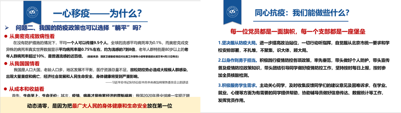 在班会上,班主任和辅导员们一起,与同学们共同研讨了当前的疫情防控形势以及国家“动态清零”总方针和学校严格管理的原因。
