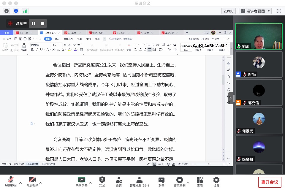 学院常务副院长潘翀从理解、关心和纪律三方面展开,表示要理解上级和学校的防控政策、也要理解学生们的诉求和困难;要关心关爱学生,积极与同学们保持沟通,切实发挥好导师、班主任和辅导员的作用,尽己所能帮助学生解决学习生活等方面的问题,引导学生认真遵守学校各项防疫措施;要严肃政治纪律,始终与上级政策保持一致,大疫当前,每个共产党要始终保持清醒头脑,用实际行动体现责任担当。
