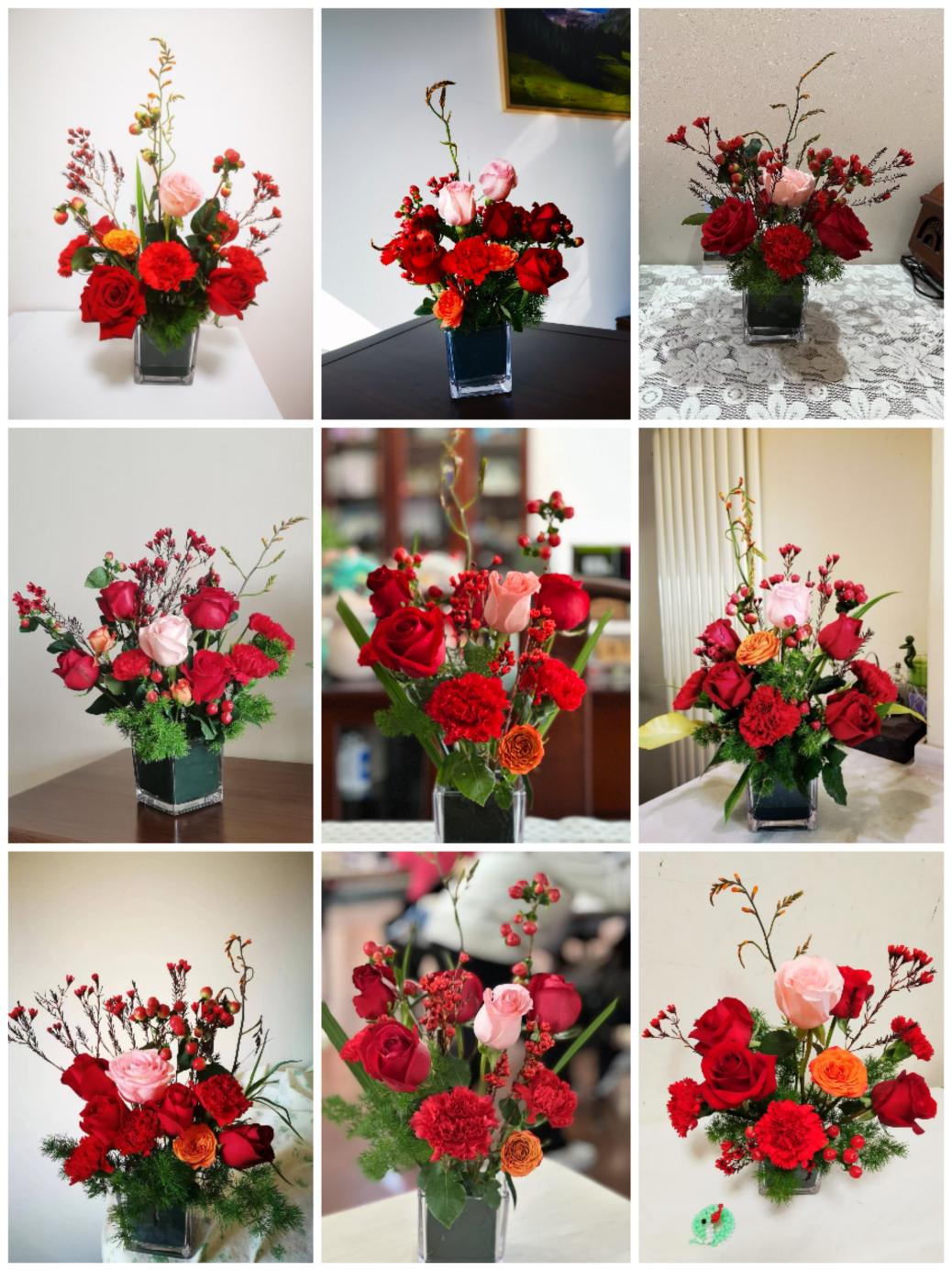 聆听了专业讲解后,线上线下的老师们沉浸于鲜花的海洋中。在玫瑰、康乃馨、火焰兰、腊梅等新鲜花材的簇拥下,老师们灵感迸发、认真创作,共同畅想春天的幸福图景。他们以巧手为笔,以鲜花为墨,精心构思,巧妙搭配,将一朵朵娇艳欲滴的花朵幻化成一件件充满春意的插花作品。在欣赏他人作品时,老师们互相交流心得,赞叹不已,从中汲取灵感,充分发挥自己的创造力,将对美的理解融入作品之中。