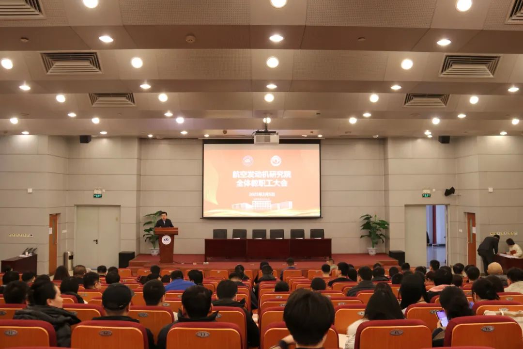 北航新闻网3月14日电(通讯员 井彦祺)3月5日下午,航空发动机研究院(以下简称“航发院”)在沙河校区实验四号楼205会议室召开2025年春季全体教职工大会。会议对2024年度考核优秀及突出贡献的团队和个人进行了表彰,传达了学校2025年度工作会和全面从严治党工作会暨警示教育大会精神,并宣贯了航发院2025年度重点工作。航发院全体教职工参会,副院长景喜双主持会议。