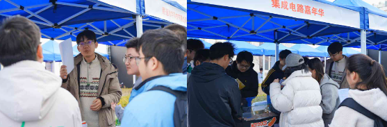 本次企业嘉年华汇聚了北京北方华创微电子装备有限公司、歌尔股份有限公司、合肥致真精密设备有限公司、中国科学院微电子研究所等13家集成电路行业领军企业,为集电学子们搭建了零距离对话平台。现场来自不同年级的同学们踊跃交流,咨询职业发展路径,深入了解行业现状,为自己的职业规划明确了方向。