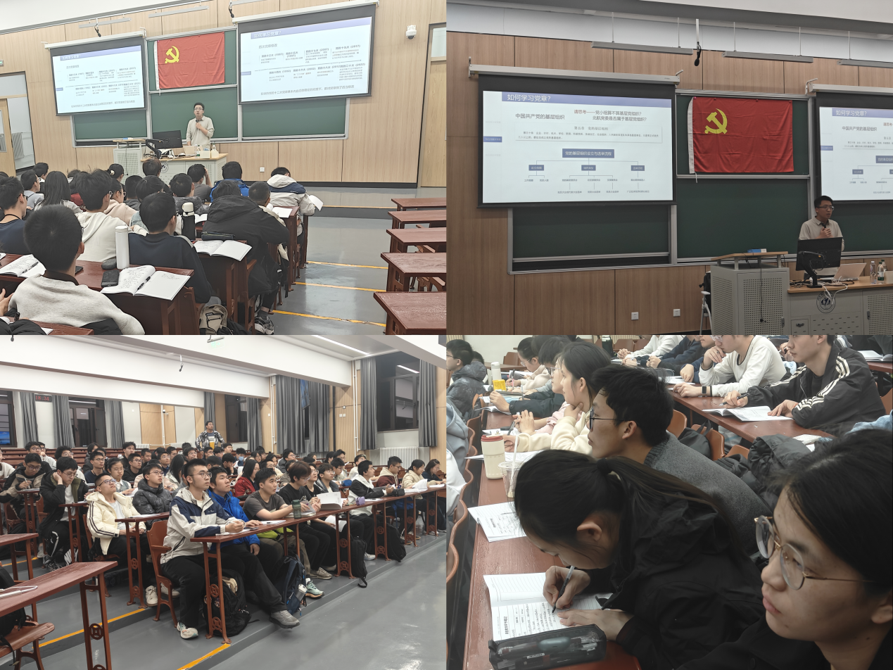 开班仪式结束后,马克思主义学院副教授刘佳作题为《结合党史学党章》的首场党课。他从党章的学习方法和类型引入,指出学习党章应紧密结合党义、党情、党史这三个维度,进行系统深入的探究。随后,刘佳带领学员们回溯历史,详细介绍了中国共产党章程的具体内容、诞生背景以及发展历程。他向学员们强调要树立正确的党史观。在实现中华民族的伟大复兴中,坚持实事求是,旗帜鲜明地反对虚无主义。最后,刘佳聚焦新时代伟大变革与历史性成就,强调要在这一时代背景下深化对党章的学习,学会从政治高度思考问题、开展工作,不断提升政治判断力、政治领悟力、政治执行力。鼓励他们在未来的学习与生活中,以实际行动践行对党的忠诚,向着成为合格党员的目标坚定迈进。