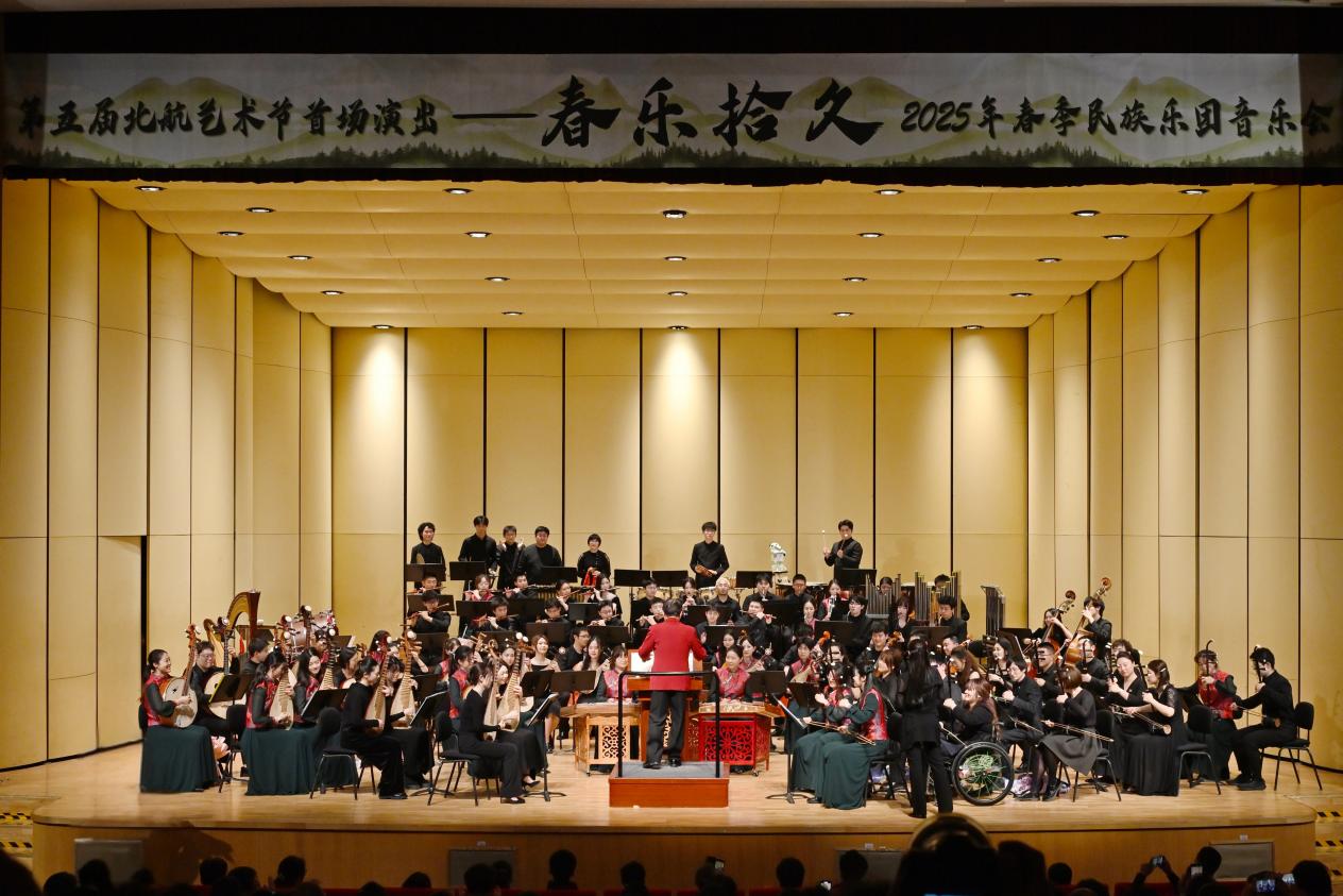 北航新闻网3月27日电 (通讯员 杨翊匙)春乐悠扬,弦歌不辍。3月23日晚,北京航空航天大学学生民乐团联合北京市云中鹤民族管弦乐团在学院路校区晨兴音乐厅举办北航第五届艺术节首场演出暨“春乐拾久”2025年春季民族乐团音乐会。