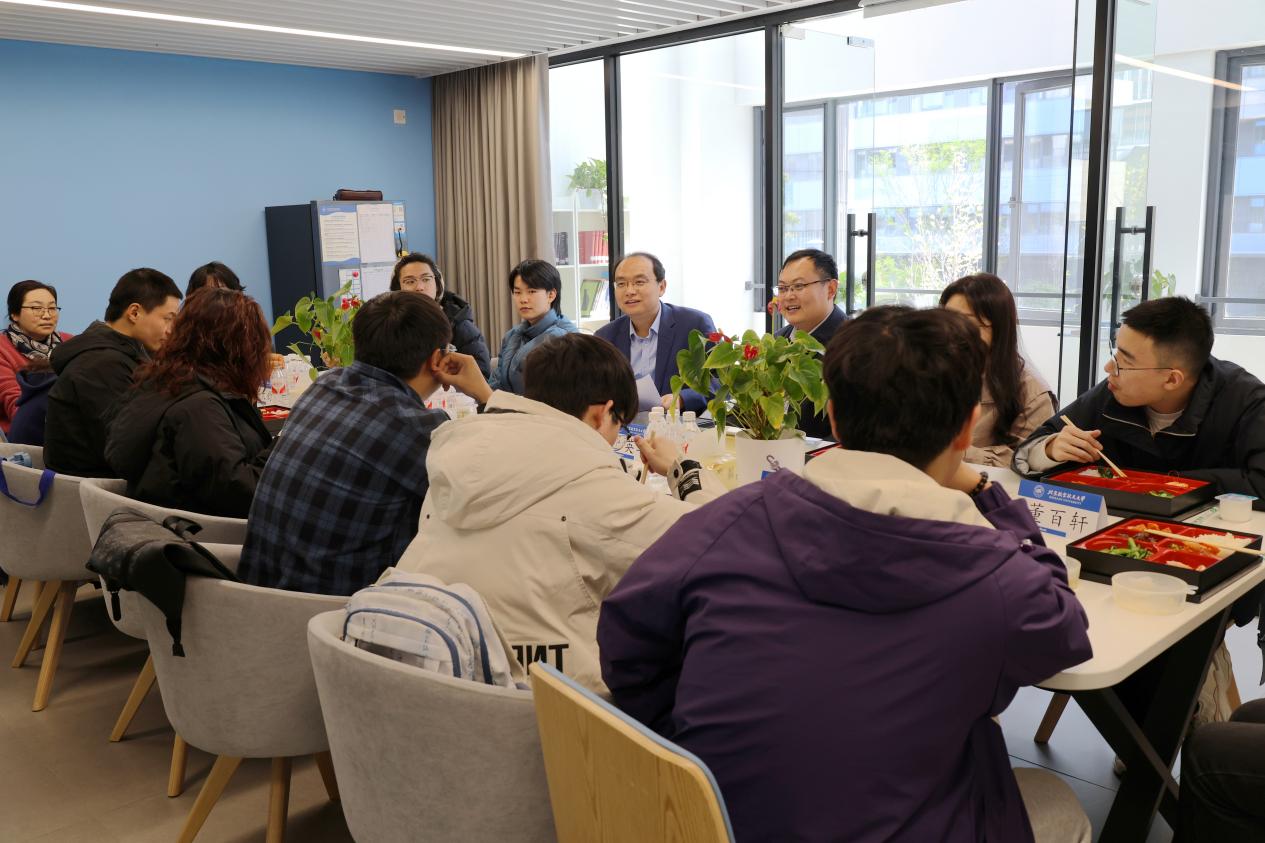 活动伊始,杭州国际创新研究院(国际创新学院)院长董卓宁与D10公寓楼栋长李传铮共同为 “学生之家”公共活动空间揭牌。该空间集自习、交流、休闲功能于一体,即日起向全体同学预约开放,方便同学们学习生活。随后师生开展午餐餐叙,各楼栋长、楼层长代表围绕“学生之家”建设和运行方案积极献计献策,同时也积极反馈同学们学习生活需求,并一致表态要发挥“主人翁”精神,加强社区管理服务,共建文明和谐的宿舍社区文化环境。