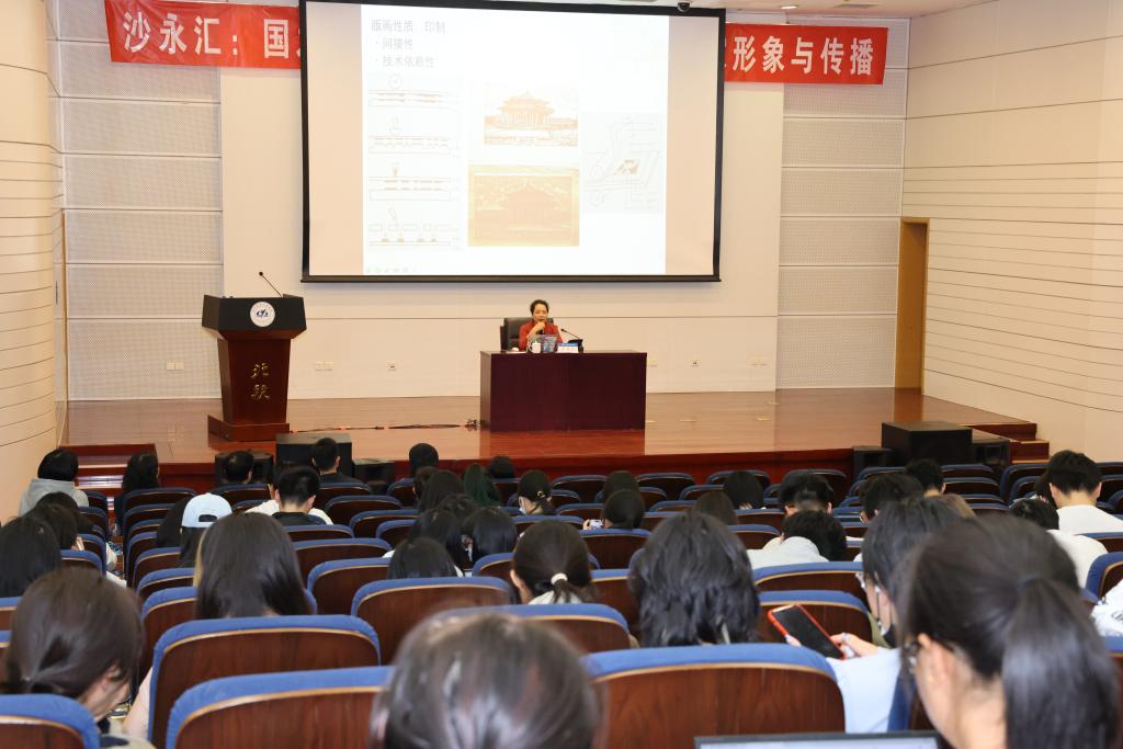 讲座中,沙永汇以版画艺术为脉络,通过“艺术学习的时代意义”“版画的历史脉络与全球贡献”“中国当代版画创作解析”等板块,带领师生走进版画艺术的深邃世界。她以《北京大兴国际机场——凤凰展翅》《港珠澳大桥现场纪实——天下飞梁》《一曲飞千年》等个人代表作为例,生动阐释了版画如何以刀刻木痕的独特质感,将国家重大形象工程、航天、核聚变等重大科技成果转化为富有温度的艺术符号。沙永汇指出:“版画的工艺性与叙事性,能突破科技表达的抽象性,让国之重器背后的奋斗故事与人文情怀跃然纸上,激发公众对国家成就的情感共鸣?!?br>