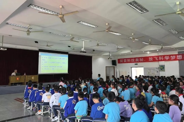 △4月8日和10日,郑彦良教授先后走进富阳区实验小学、富阳常安镇小学和景苑中学,为同学们作题为《中国航空航天发展与科学家精神》的报告