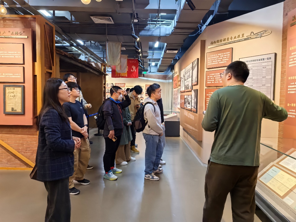 全体人员首先前往北京航空航天大学校史馆。在讲解员的引导下,同学们依次参观了“空天报国”主题雕塑、序厅和四个主题展览。通过系统回顾北航70余年扎根航空、逐梦星辰的奋斗历程,在场人员无不为一代代北航人赤诚滚烫的空天报国使命担当深受感染。在互动交流环节,创新院党群人力部王萍萍以创新院的“三拼命精神”为切入点,分享了校企联合培养模式下的使命担当。