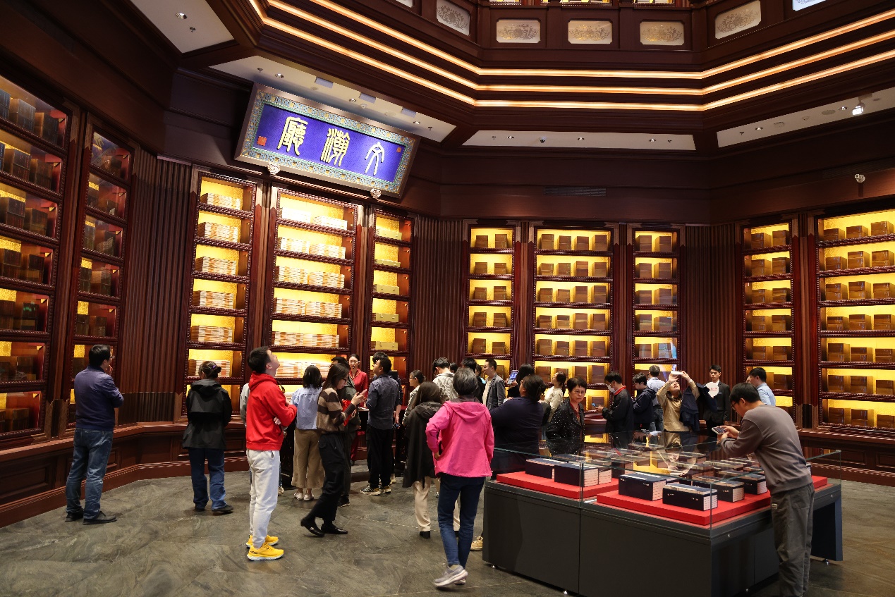 在讲解员的带领下,师生们陆续参观了“文瀚聚珍—中国国家版本馆捐赠入藏精品版本展”、“斯文在兹—中华古代文明版本展”、“真理之光—马克思主义中国化时代化经典版本展”、“见证伟业—中华民族复兴版本展”等系列展览,和文翰厅、文华堂、国家书房、洞库等精品陈列展厅。从承载千年智慧的古籍善本,到见证时代变迁的红色文献,每一件版本珍品都让师生们深切感受到中华文化博大精深的厚重内涵。