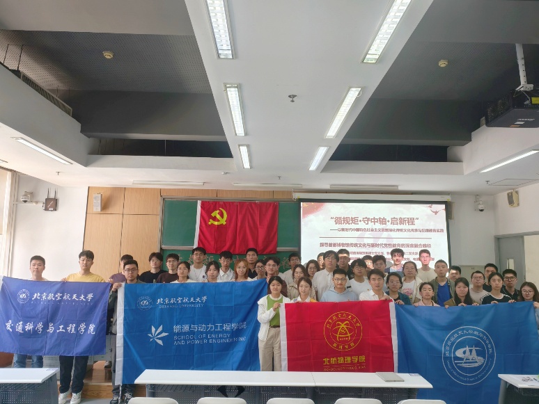 北航新闻网5月19日电(通讯员 曲韵 陈佳琳)为深入贯彻习近平总书记关于文化传承发展的重要论述,坚定文化自信,增强文化认同。5月14日,北航物理学院应用物理系硕士党支部、物理系硕士第二党支部联合北航能源与动力工程学院能源硕士第三党支部、航推硕士第三党支部、北航数学科学学院硕博研究生Y24091党支部、北航交通科学与工程学院交通运输系研究生第二党支部开展“循规矩·守中轴·启新程”主题党日活动?;疃üㄌ獾晨窝刑?、跨学科交流、沉浸式展馆研学等形式,使文化自信转化为创新动能,将纪律规矩具象化为科研规范,为培育新时代“心怀国之大者”的科技人才夯实思想根基。