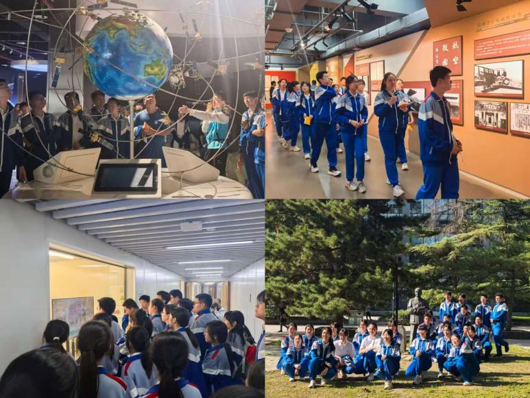 在北航校史馆,通过珍贵的历史照片、实物展品和多媒体展示,师生们系统了解了北航自1952年建校以来的发展历程。从抗美援朝时期的航空速成班,到如今建设世界一流大学,北航始终与国家航空航天事业同频共振。校史馆内“空天报国”的主题雕塑格外醒目,让同学们深刻感受到一代代北航人的使命担当。